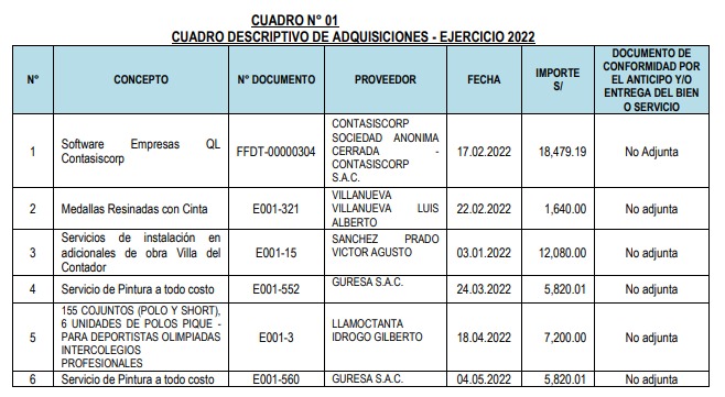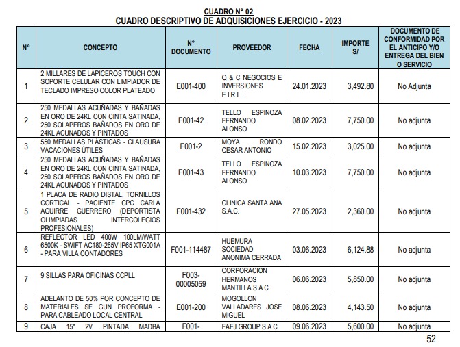 En la auditoría del periodo 2022-2023, también se observaron adquisiciones sin cotizaciones ni conformidad de servicio, lo que según los auditores vulnera los estatutos internos del CCPLL. Estas observaciones han encendido las alarmas dentro del gremio profesional, que exige transparencia y una investigación exhaustiva.