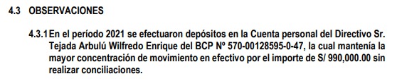 Los informes dan cuenta de pagos sin contratos ni liquidaciones, diferencias de saldo por miles de soles y servicios facturados sin sustento ni lista de beneficiarios. Además, se detectaron depósitos de cuotas colegiadas en una cuenta personal del actual decano, por cerca de S/990 mil, sin conciliaciones bancarias ni transferencias institucionales.