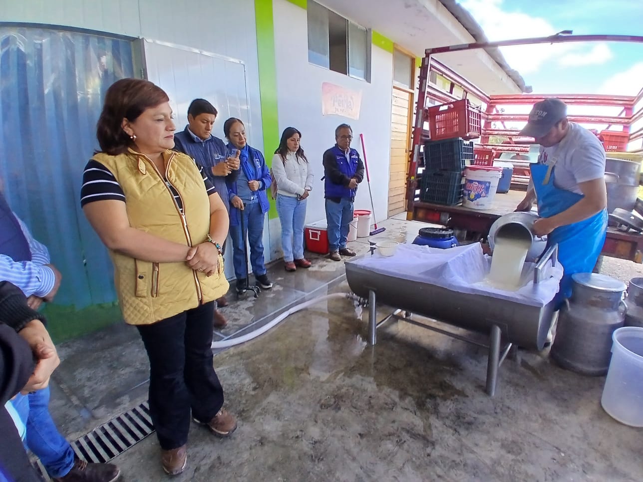 La jornada incluyó una degustación de productos artesanales en la tienda de distribución «El Pedregal» y la inspección de la planta de La Perla del Paraíso, que acopia hasta 3,000 litros diarios de leche de más de 150 productores locales.
