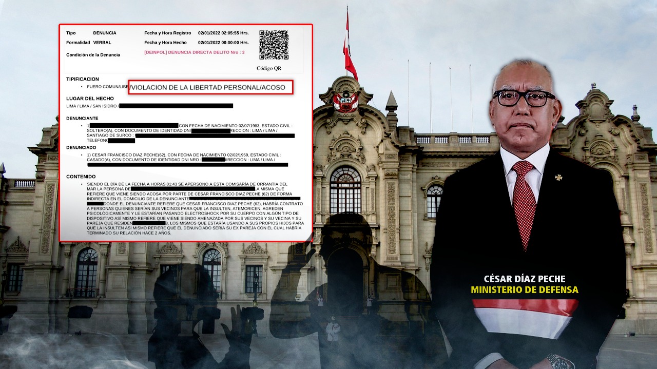 El nuevo ministro de Defensa, César Díaz Peche, designado por el presidente José Jerí como parte del primer gabinete de su gestión, enfrenta dos denuncias por violencia familiar y acoso. Su expareja lo acusó ante las autoridades de hostigarla tanto en la vía pública como mediante videovigilancia y audios enviados de manera insistente.