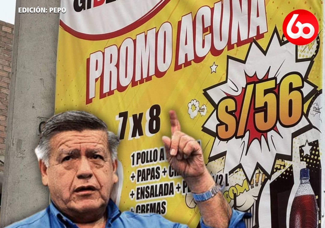 Por tan solo S/56, la promoción incluye un pollo a la brasa, papas fritas con chaufa, ensalada, cremas y una Pepsi de litro y medio, todo en alusión directa al número que se volvió tendencia nacional tras la duda matemática del político nacido en Tacabamba.