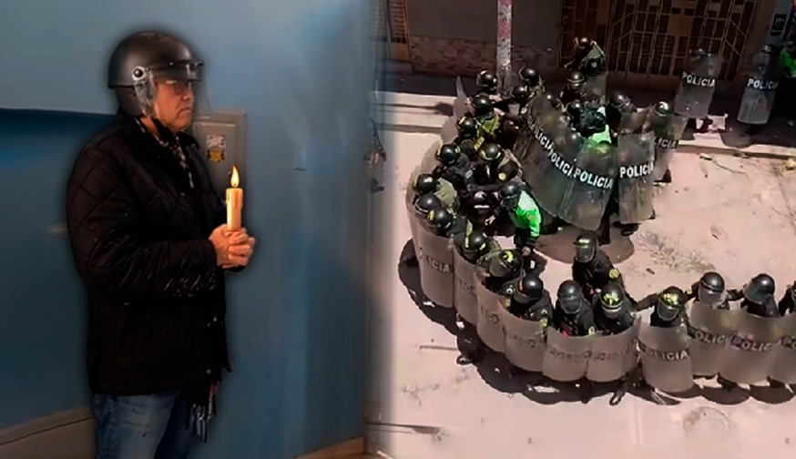 Tras casi dos horas de tensión, efectivos policiales llegaron al lugar para facilitar su salida. Sin embargo, el operativo no evitó los incidentes: según medios locales, personas apostadas en los techos arrojaron agua con orines y objetos mientras el candidato era retirado de la zona bajo resguardo.